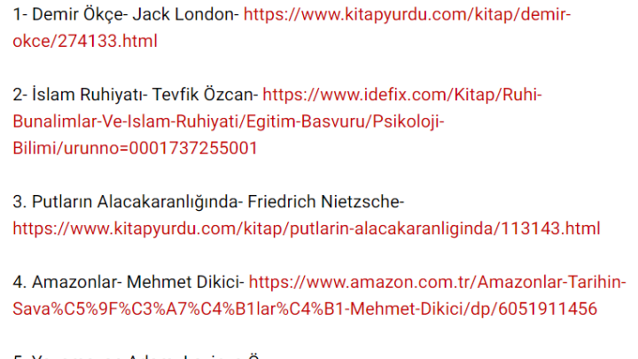 5 kitap ikram ediyoruz. Kitap Şuuru sayfası olarak her hafta şartlarımızı yerine getirme vaadinde bulunan takipçilerimize kitap hediye ediyoruz. Bu hafta birbirinden farklı, her birinden birer adet olmak üzere toplam 5 kitabı müdavim ve takipçilerimize hediye edeceğiz. Sonuçları 19 Ağustos 2021 günü saat 21.00’de açıklayacağız. Hediye kazanan kişilerin listesini sayfamızdan açıklayacağız. Başvuru sayfası: www.facebook.com/kitapsuuru/ Şartlarımız: A.)…