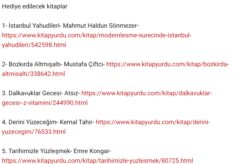 I.)Aynı anda 3 kitaba talepte bulunabilirsiniz. Ancak bir kişiye birden fazla kitap hediye edilmez.